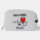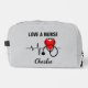 Love a Nurse Heart Stethoscope Dopp Kit Toiletry Bag with customisable text and background colour.