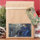 This design features a painting by the British Pre-Raphaelite artist Sir Edward Burne-Jones (1833–1898). It depicts a man and a woman amid ruined architecture from the Mediaeval period. The man and the woman appear to be lovers, as they are holding each other tightly, and they are seated together on a stone capital amid the ruins of buildings. A broken column is at their feet, which is covered with briar rose. In the background is a door, which has a frieze of cherubs, and there are arches leading into the distance behind the couple. Edward Burne-Jones worked on this painting in 1874, after his four-year love affair with his model Maria Zambaco had come to a sudden end.