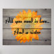 All you need is love and a sister. Printed over a background of an orange sunflower on a wooden wall.