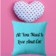 Love And Cat Personalised Cute Funny Quote Blue Cushion