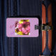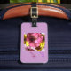 Luggage tag with leather strap with "Love and Flowers" design, licensed from Graphics Factory, with MoonDreams Music logo
