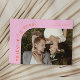 Modern and playful wedding thank you photo card featuring a text that says "with love and gratitude" along the curved framed photo. You can add another photo on the back with a message. Orange pink.