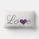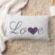 An image of white linen makes the background for this pretty lumbar pillow. The word "Love" is in grey lettering with a purple heart in place of the "V". A pretty addition for that special room in your home.