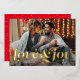 Spread the message of love and joy with this one-photo holiday card. With bold modern type in gold foil at the bottom of the frame, this design is perfect for family photos, engagement photos, wedding announcements and more this Christmas season. The back is a festive dotted red.
