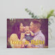 This modern Hanukkah card features the words love & light in real foil over a full bleed photo. The back has a striped pattern.