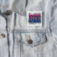 Love and pride bi pride button with the bi pride flag colours and the word LOVE