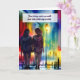 A nearly abstract street scene on a rainy evening is washed in rainbow colours to create this romantic greeting for lesbian love.