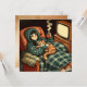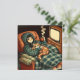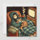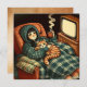 A sweet card to let someone know you are thinking about them. A girl laying in her recliner with her cat, warm cup of coffee and watching tv on a day of not feeling so well. Warn soothing vintage colours in an ai illustration showing what it is like to have chronic illness and pain.