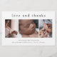 Love and Thanks Minimal 3 Photo Collage New Baby Thank You Card with simple type and 3 pictures of newborn on the front. The back has a personal message from the family. Click the edit button to customise this design with your photos and details.