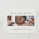 Love and Thanks Minimal 3 Photo Collage New Baby Thank You Card with simple type and 3 pictures of newborn on the front. The back has a personal message from the family. Click the edit button to customise this design with your photos and details.