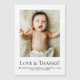 Share your joy with this Love and Thanks Baby Photo Birth Announcement magnet card, featuring one cherished photo, your baby’s name, and a customizable heartfelt message—perfect for announcing your little one’s arrival and expressing gratitude.