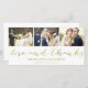 This simple and chic 3-photo wedding thank you photo card features a collage with whimsical script lettering that highlights your favourite wedding photos. Please note that this is not actually metallic gold foil and will be printed flat.