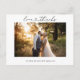 Love and thanks script with connected heart and photo thank you postcard. The back includes names and return address, prewritten changeable message along with the words Love and Kindly Deliver To in a calligraphy style script font. A beautiful way to say thank you from the bride and groom.