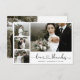 Elegant, Minimalist Hand Written Heart Script Wedding Grid 4 Photo Collage Thank You Card in Black and White. Modern card template featuring four (4) photo on the front and (1) one photo on the reverse side. With the text "Love and thanks" in a cursive hand lettered typography cute heart script swash tail font. Personalise your name and add your message. If You need help or matching item, please contact to me!