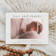 Love and Thanks Minimal Photo New Baby Thank You Card with simple type and picture of newborn on the front. The back has a personal message from the family. Click the edit button to customise this design with your photos and details.