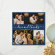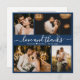 Elegant Navy and White "Love and thanks" Script 4 Photo Collage Wedding Thank You Card. Stylish, modern wedding thank you card template featuring four (4) photo on the front and one photo on the back. With the text "Love and thanks" in a swirly hand lettered typography swash-tail font in white on dark navy blue colour background. Personalise the custom name and thank you message. If you prefer to handwrite your note, just delete the sample text to make more space. If You need help or matching item, please contact to designer!