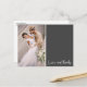 Customise these grey script wedding thank you cards with your photo and thank you message. With a modern "Love and thanks" design, these thank you postcards are a budget-friendly way to thank your family and friends for being a part of your big day.