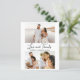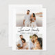 Budget Elegant Love and Thanks Calligraphy Script Elegant 3 Photo Collage Wedding Thank You Card. Simple minimal wedding thank you template featuring three (3) photo on the front and one photo on the reverse side. With the text "Love and thanks" in a hand lettered typography script font in black on white background. Add your name and thank you message. If you prefer to handwrite your note, just delete the sample text to make more space. Cheap inexpensive, low price thin cards. Great choice for a low budget wedding.