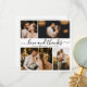 Elegant "Love and thanks" Script 4 Photo Collage Wedding Thank You Card. Stylish, modern wedding thank you card template featuring four (4) photo on the front and one photo on the back side. With the text "Love and thanks" in a swirly hand lettered typography swash-tail font in black on white background. Personalise the custom name and thank you message. If you prefer to handwrite your note, just delete the sample text to make more space. If You need help or matching item, please contact to designer!
