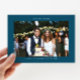 Simple and minimalistic wedding thank you card featuring your wedding photo with a white frame with texts around that says "Love and Thanks" and the couple's names and the wedding date. There is a pre-printed message on the back of the card that's editable and another picture can be added as well. This 2-sided thank you card is so timelessly stylish. The background is teal.