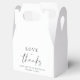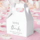 A chic favour box for your wedding featuring "Love + Thanks" in a mix of a modern script and elegant typography, your names and wedding date.