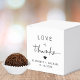 Chic wedding favour box featuring "Love + Thanks" in simple typography and a stylish modern script, and your names and wedding date.