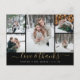 Custom printed blank thank you postcards personalised with your photos and text. This chic design features a photo collage layout with space for 5 wedding photos. Customise the text with your name and wedding date or add a custom message to use for wedding thank you cards or other personal stationery. Use the design tools to choose any background colour, add more photos, add a printed message on the back of the cards or edit the text fonts and colours to create a unique one of a kind wedding thank you card.