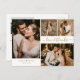 Elegant, Minimalist White and Gold Hand Lettered Wedding 4 Photo Collage Thank You postcard. Stylish wedding thank you card template featuring four photo on the front and one photo on the back. With the text "Love and thanks" in a swirly hand lettered typography script font with swash-tail font in gold on white background. Add your custom name and thank you message. If you prefer to handwrite your note, just delete the sample text to make more space. If You need help or matching item, please contact to me!