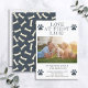 It was love at first lick, and now you have to let everyone know! A cute new puppy announcement featuring your photo in the middle. Cute navy blue hand lettered and modern sans serif typography announce 'Love at first lick!', with your meet and greet invitation below. Cute watercolor paws decorate the front, and the back features an all over watercolor bone pattern on navy blue. Copyright Elegant Invites, all rights reserved.