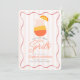 This retro and modern "Love at First Spritz" bachelorette weekend invitation features a glass of spritz surrounded by a pink wavy frame on a light peach/orange pink stripe background. The reverse side features an itinerary. Personalise it for your needs. You can find matching products at my store.