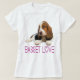 Basset Hounds rule! This cute canine tee shirt features a portrait of a Basset Hound puppy dog with the words Basset Love in a cute heart font.