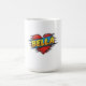 This comic-style graphic mug features the name "Bella" over a beautifully designed energetic heart design. This is a great gift for your friend, girlfriend, wife, and sister.