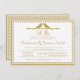 This 50th wedding anniversary invitation features two bird silhouettes, a decorative divider and a gold/brown and white pattern border. It's ready to be personalised and is suitable for a semi formal 50th wedding anniversary.