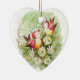 A vintage illustration of two adorable little love birds on their wedding day. He wears a top hat and she wears a bridal veil as they stand together on a bouquet of white flowers. The back of this ornament has been left blank so that you can include customisation if you'd like. A suggestion might be the bridal couple's first names and wedding date. It would also be a cute Christmas gift to a newlywed couple with "First Christmas Together" and the date of their first Christmas as a married couple on the back. This is a lovely gift to a bride. Another idea is that the bride could give it as gifts to her bridesmaids, or as tokens of appreciation to the guests at her bridal shower. Ornaments are available in a variety of shapes for you to choose from, but for a wedding, this heart-shaped ornament is so sweet!