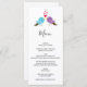 This design features a pair of adorable love birds. A cute and simple illustration of birds in love with red hearts floating in the air. Love and passion is in the air with this design. A romantic simple design with elegant typography. This design is ideal for any wedding theme. The perfect all season wedding menu card design. Matching wedding invitations and other stationery items are also available.