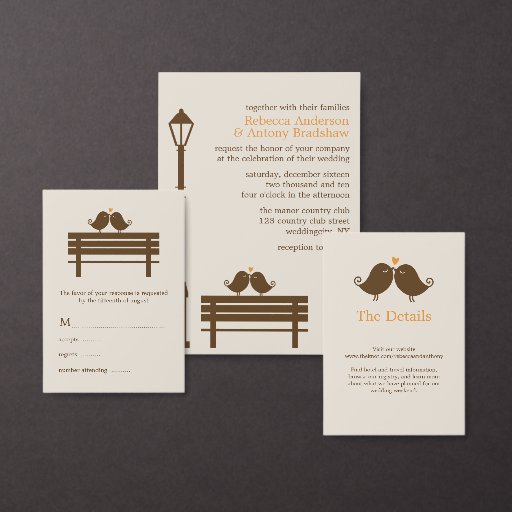 Love Birds on Park Bench Wedding Invitation