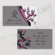 Love Birds On Sakura Tree And Chinese Love Symbol Business Cards. Leave a very favourable first impression with these lovely business cards. A business card with an Asian flair featuring two love birds on a blooming sakura tree with purple flowers under a grey, curled page and the Chinese love symbol on the right and another sakura tree on the left. Personalise it with your text.