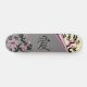 Love Birds On Sakura Tree And Chinese Love Symbol Skateboards. A skateboard with an Asian flair featuring two love birds on a blooming sakura tree with pink flowers under a grey, curled page on the one side, another sakura tree on the other and the Chinese love symbol in the middle.