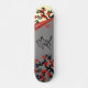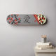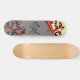 Love Birds On Sakura Tree And Chinese Love Symbol Skateboards. A skateboard with an Asian flair featuring two love birds on a blooming sakura tree with red flowers under a grey, curled page on the one side, another sakura tree on the other and the Chinese love symbol in the middle.