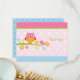 Adorable, brightly coloured in shades of pink and green, Love Birds & Owl on Branch Thank You Card.