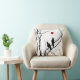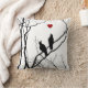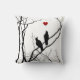 Pillow with bird silhouettes on a branch looking at a floating heart. Love birds for the one you love.