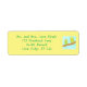 Fun and pretty parakeets adorn these address labels. The image sits to the right of the text, on a background of light yellow. The text is written in blue green, to match part of the birds. It's is easy to personalize on the template form. They are a fun choice for wedding and newlywed announcements. Thank you for shopping CherylsArt on Zazzle.