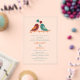 Celebrate your special day with this charming love birds wedding invitation, featuring a beautifully simple illustration of two birds facing each other. One bird is designed in soft cool tones, while the other with warm hues, symbolizing the harmony of two unique souls coming together. The clear acrylic adds a delicate, neutral touch, making this design perfect for weddings with a modern yet playful feel. With its balanced color palette of cool and warm shades, this invitation suite is a wonderful choice for couples looking to express their love in a lighthearted and elegant way. Fully customizable to suit your event details.