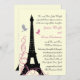 A tall, elegant and stately Eiffel Tower decorates this wedding invitation. The pretty shades of pink and off white, and the fancy French script accent the romance of your Parisian themed evening. This invitation is shown on the basic paper; however, I recommend the weight and texture of the linen paper. This invitation is part of a full wedding line; however, if additional items are required just let us know.