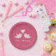 Cute little love birds singing with a heart in the centre. The background colour is customisable.