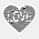 A heart shaped sticker filled with an optical illusion design of black and white stripes embracing the word LOVE on a white background.