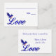 Personalised wedding table place cards with the word Love in elegant letters and a pretty bluebird. Personalise the back of the card with your names and date of wedding using the template. This design is available on many products in my gallery. Please visit Smilin' Eyes Treasures to see more wedding and bridal cards and gifts.