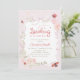 A soft and elegant baby shower invitation featuring blush pink florals, delicate greenery, charming ladybugs, and a graceful bow. The gentle pastel color palette and romantic garden style make this design perfect for a baby girl shower. Matching items available.