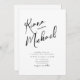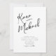 Elegant handwritten script text and brush stroke accents are used to create the pieces of this beautiful, modern wedding suite. The wedding 'Invitation' card shown here also features a unique design for your initials on the reverse. Easily add your own image, names, and event details using the provided template. Search ID940 to see other pieces and colour choices for this set.