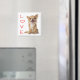 Aww...Who can resist the hppy face of a Chihuahua puppy dog?  This cute magnet features portrait of a long hair Chihuahua puppy highlighted against a crisp white background. She is ready to send you lots of love.